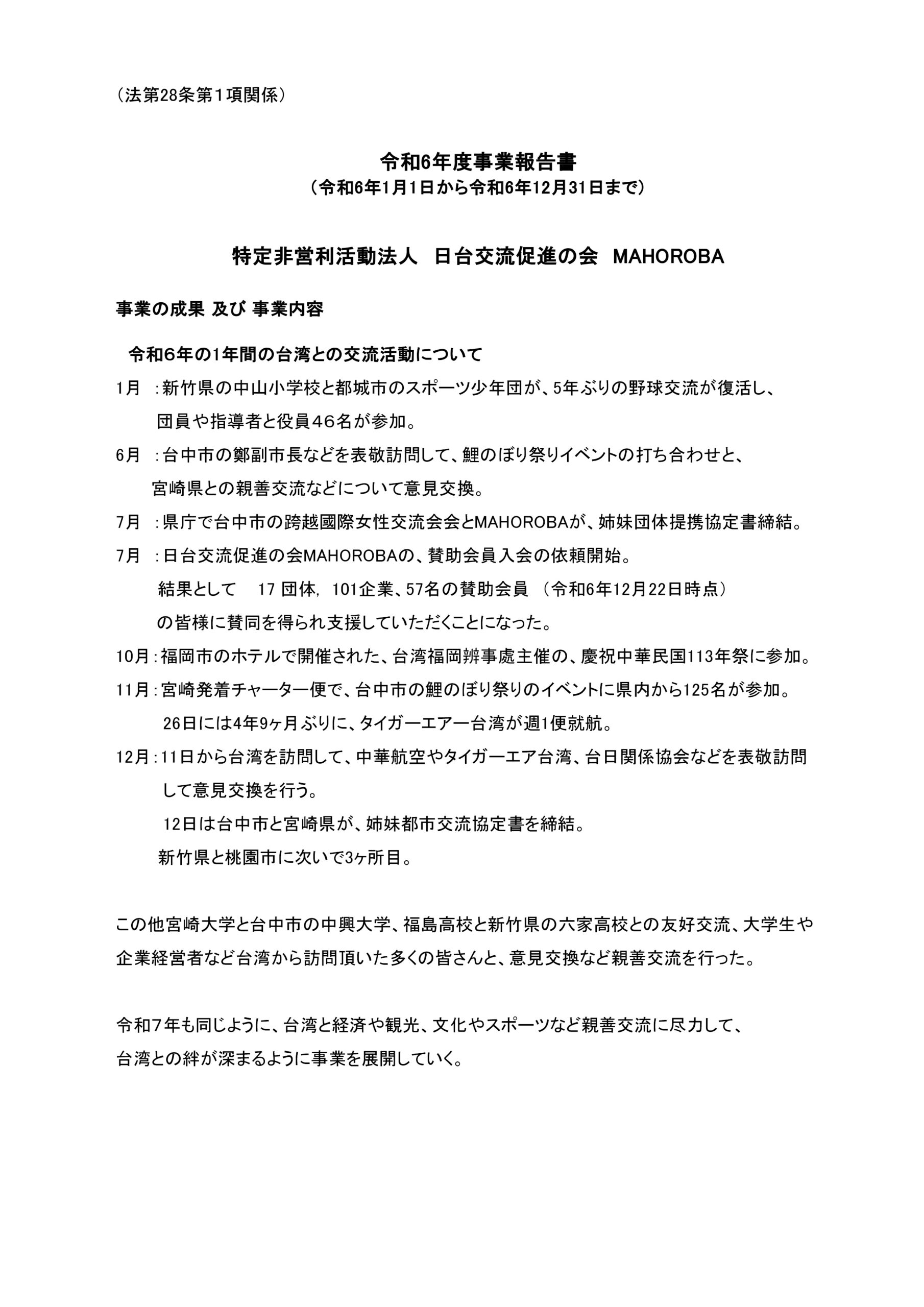 事業報告書2026年2月23日令和6年度事業報告書等提出書