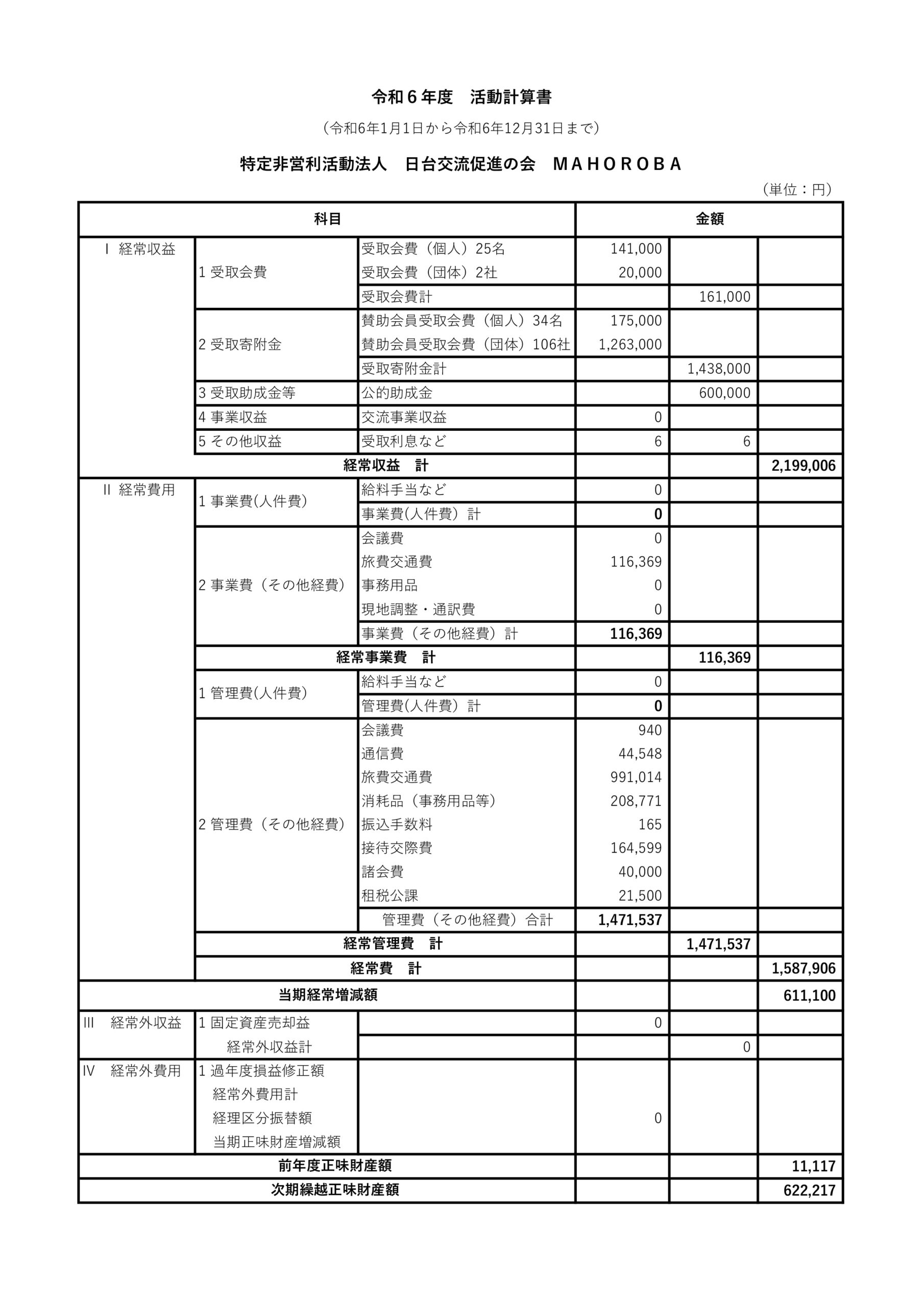 事業報告書2026年2月23日令和6年度事業報告書・活動計算書