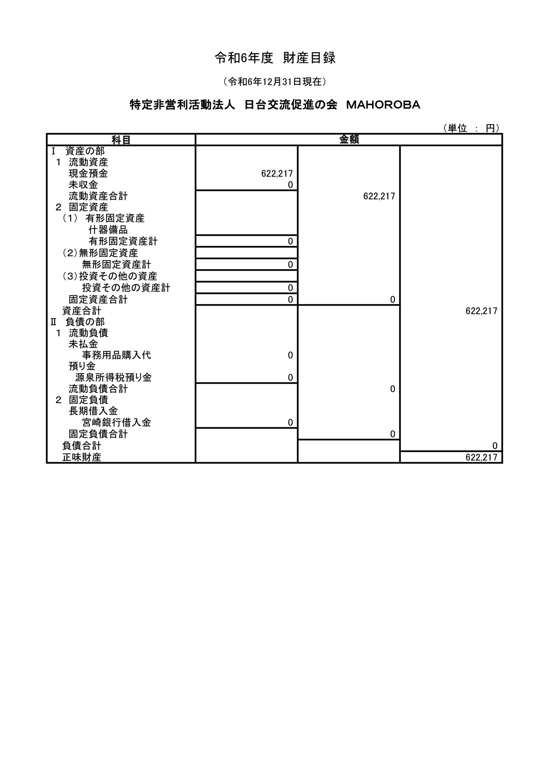 事業報告書2026年2月23日令和6年度財産目録